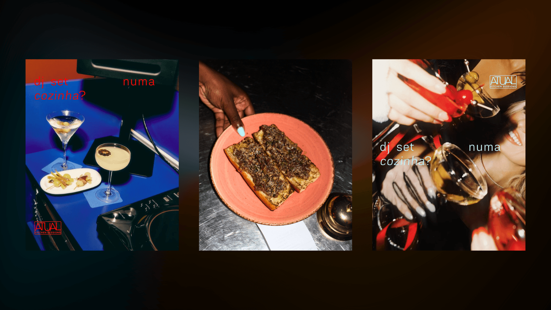 O Atual Kitchen Sessions nasceu da vontade de unir gastronomia e música de uma forma inesperada. Inspirado pela dinâmica da cozinha Atual, o evento convida o público a viver uma noite onde os petiscos ganham ritmo e a música ganha aromas. O DJ atua literalmente dentro da cozinha, criando uma fusão única entre som e sabor. Com uma estética moderna e comunicação vibrante, o Kitchen Sessions transforma a cozinha no coração pulsante do evento.